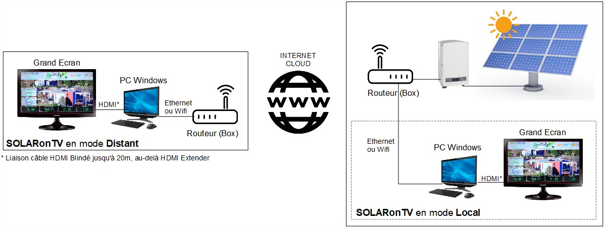 SOLARonTV peut-être installé sur le site de production ou sur tout autre lieu distant.
